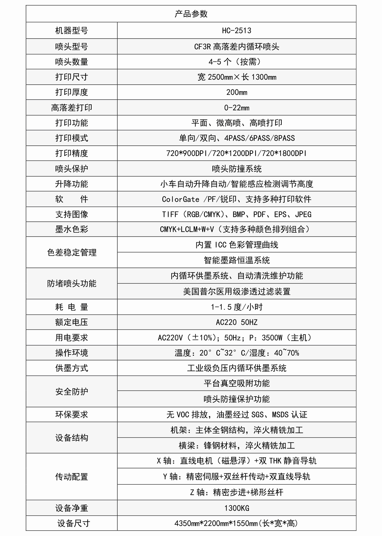 設備型號:HC-2513 高落差UV打印機